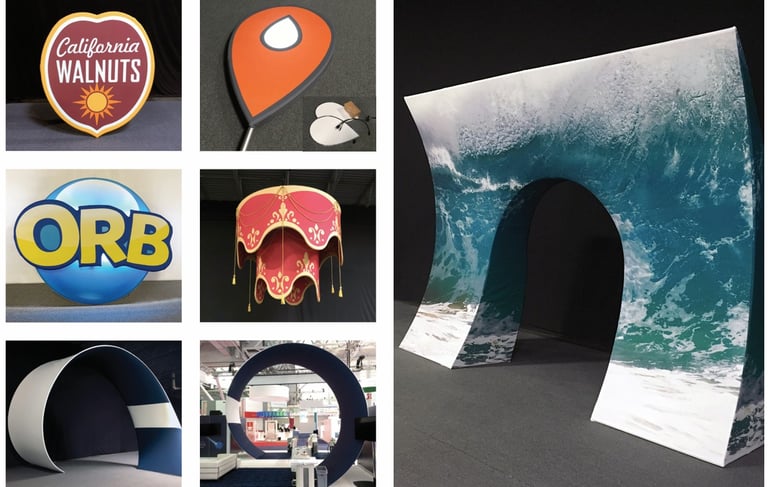 We are experts in the trade show industry! Our round tube frames with pillowcase fabric make even the most unique designs possible. Silicone edge graphics, light-boxes, functional and decorative structures, and even custom furniture are all made right here, in house.